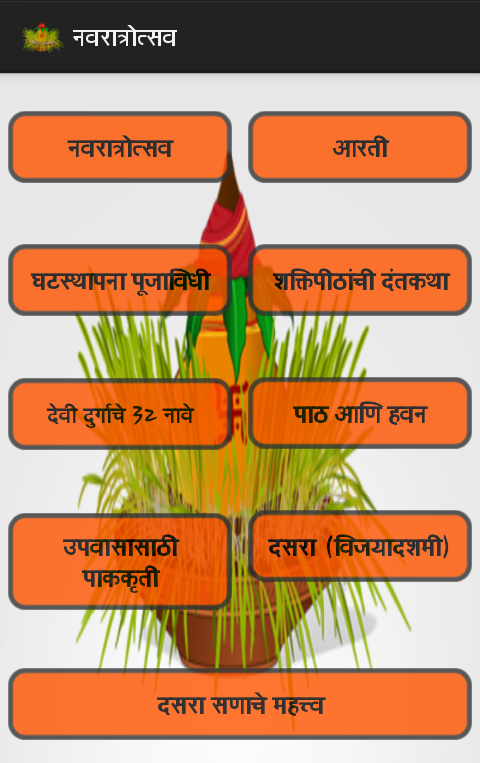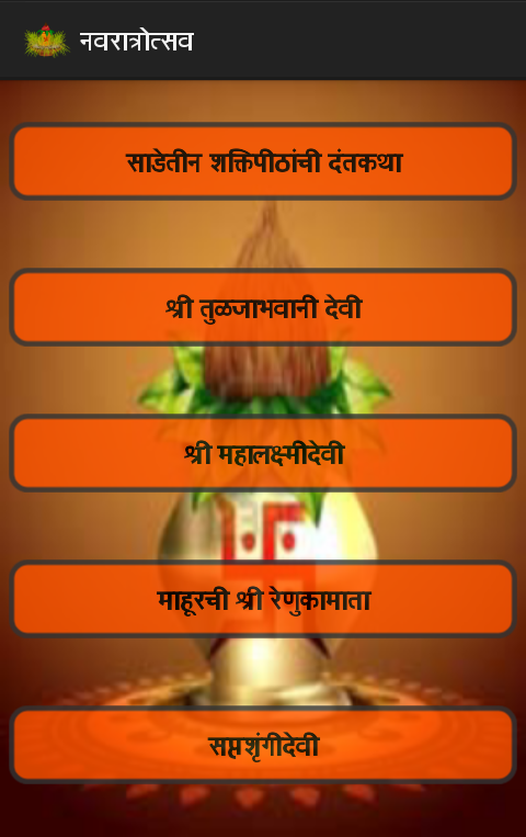तसेच दुर्गा देवीचे नऊ रूपां बद्दल माहिती . दुर्गा देवीचे ३२ नावे. देवीचा जोगवा , उपवासाच्या पाककला असा माहीतीचा खजिना असलेल्या आमच्या अँप ला आपण डाऊनलोड करून आपली प्रतिक्रिया आम्हाला कळवाल अशी अपेक्षा.