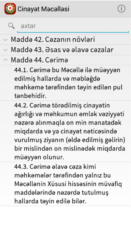 This version of Cinayət Məcəlləsi Android App comes with one universal variant which will work on all the Android devices.