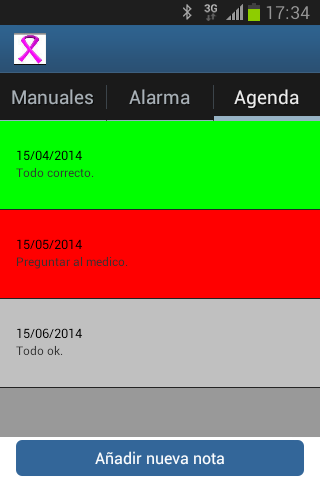 Aplicación que presenta de manera sencilla los manuales de autoexploración para detectar el cáncer de mama y de testículo. Dispone también de un sistema de notificación para recordar al usuario realizarse la prueba mensualmente y una agenda para llevar un registro de dichas pruebas. Application has simply manuals cancer self-examination to detect breast and testicle. It also has a notification system to remind the user testing and monthly calendar to keep track of such testing.