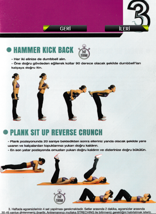 Türkçe açıklamaları ile kolaylıkla uygulayabileceğiniz 6 haftalık fit olma egzersizleri.