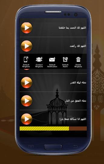 تطبيق أدعية واذكار دينية بدون انترنت سهل الاستخدام كل ماعليك فعله هو إختيار الدعاء أو الذكر المراد استعماله و الضغط على إسمه ثم تحديد إن كنت تريدها كنغمة للهاتف، للرسائل أو للمنبه.