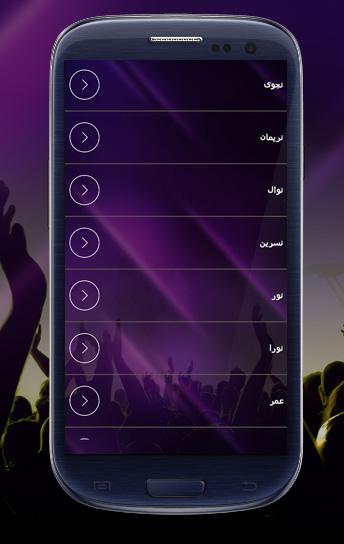 تطبيق إسمك في رنة - رنات ونغمات يحتوي على أكثر من "100 رنة ونغمة لأغلب الأسماء" مختارة بعناية لتستعملها كنغمة للهاتف أو نغمة رسائل او نغمة منبه.