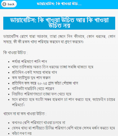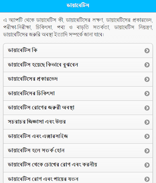 Diabetes Info in Bangla for diabetes patient in Bangladesh is a nice android app for Bangladeshi Peoples. A lot of information added in this app.