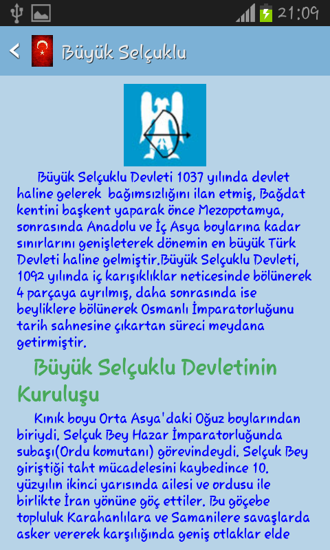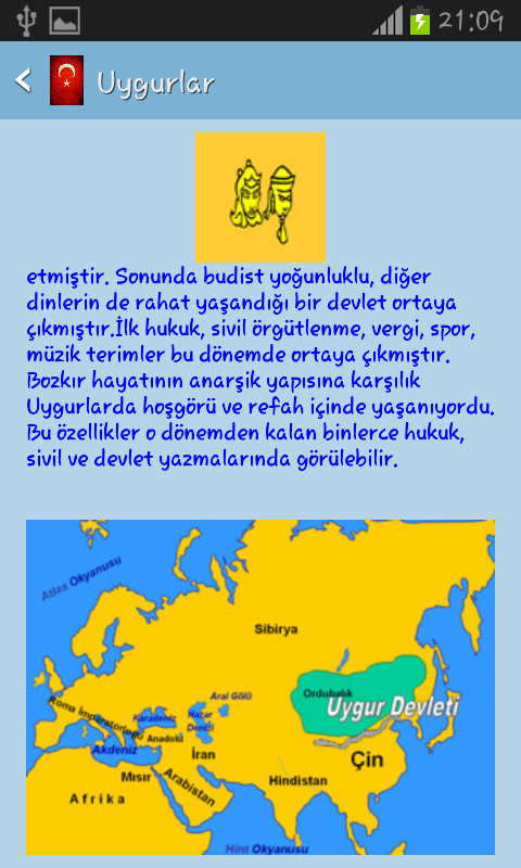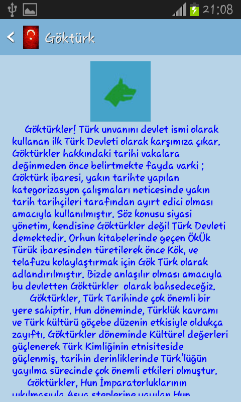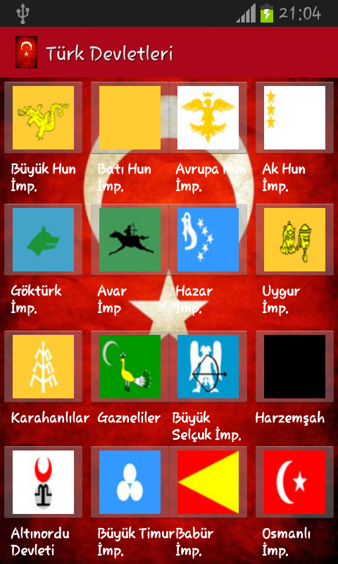Cumhurbaşkanlığı forsunda bulunan 16 büyük Türk Devleti esas alınarak hazırlanmış bu uygulama , Türk Devletleri ile ilgili kuruluş , iktisadi siyasi , ordu , yaşam biçimi , sanat , yıkılış , hükümdarlar gibi birçok bilgiyi barındırmaktadır.16 great Turkish State in the Presidential pennant prepared on the basis of this application, organizations concerned with the Turkish Government, economic, political, military, lifestyle, art, fall, contains a lot of information, such as rulers.