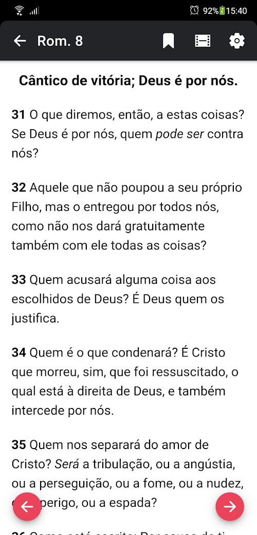 Receba versículos diários, guarde favoritos, marque de onde parou, veja títulos dos capítulos e configure o seu modo de visualização!