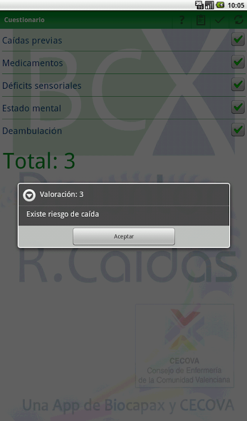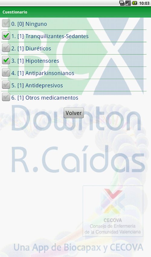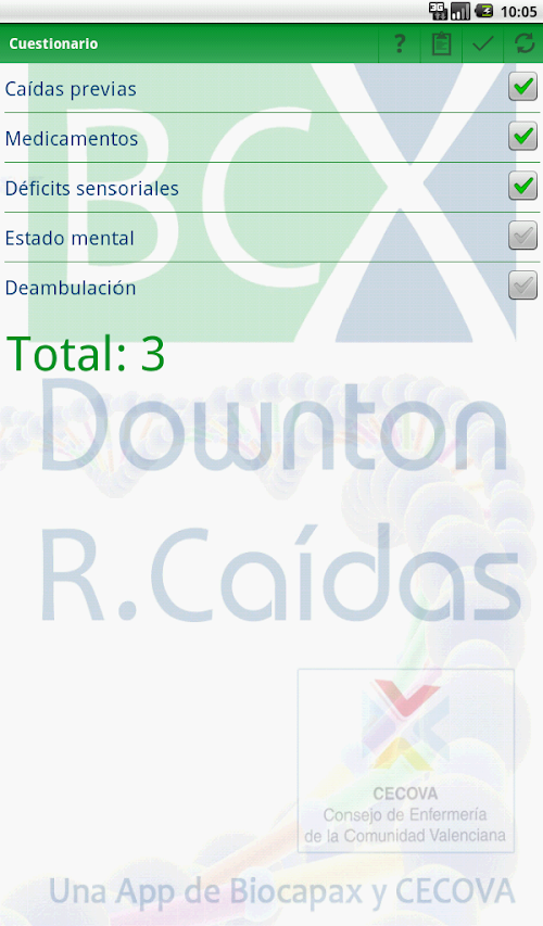 IMPORTANTE: BCX DOWNTON RIESGO DE CAÍDASes una aplicación pensada para su utilización por personal sanitario. Cualquier mal uso o uso inadecuado de ella no es responsabilidad de los creadores. El profesional siempre deberá verificar la corrección de la valoración generada por la aplicación que es meramente orientativa y basada en el índice original.