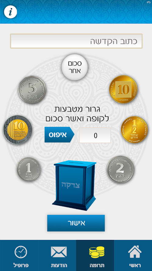 App you can, hold daily the mitzvah of charity in a convenient way, easy, secure and reliable, and take part in extensive.