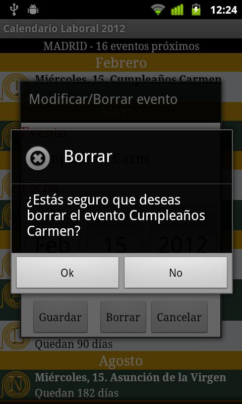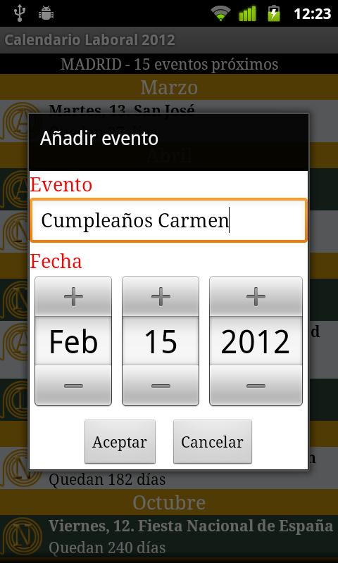 *** Podrás añadir los días que desees a esta lista de festivos, por ejemplo, cumpleaños, aniversarios, vacaciones, etc... para que también seas avisado cuando se aproximen esas fechas.