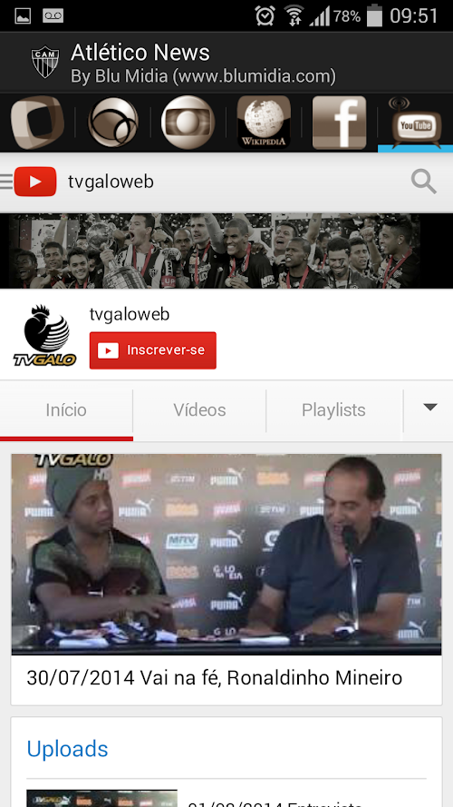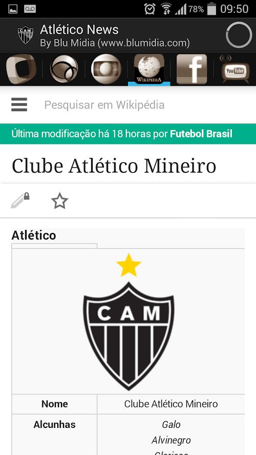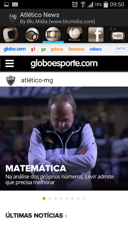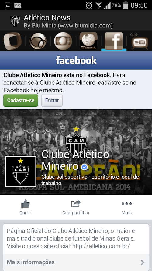 Necessário acesso a internet para obter o conteúdo.Application displays the news and information about the Club Atlético Mineiro