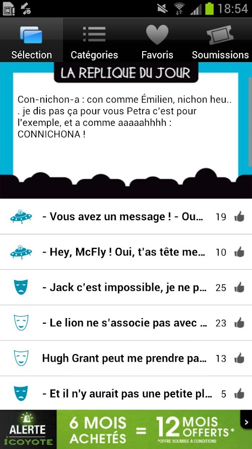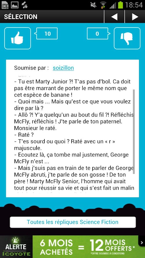 Et si VOUS pensez que votre réplique favorite mériterait de figurer dans cette application, faites-la connaître !