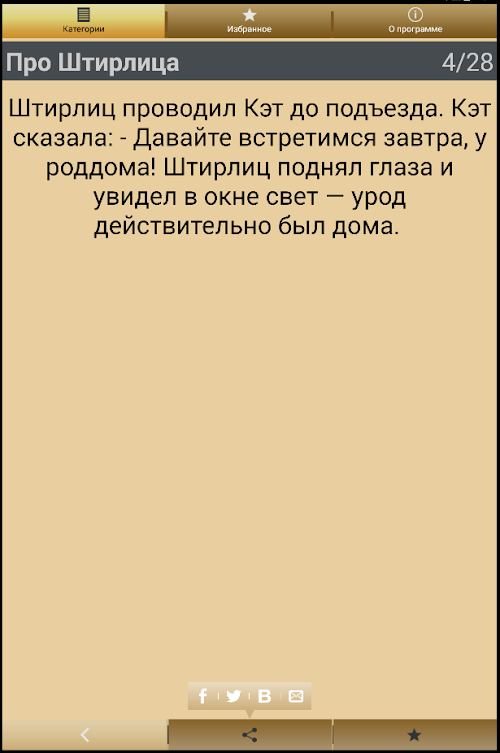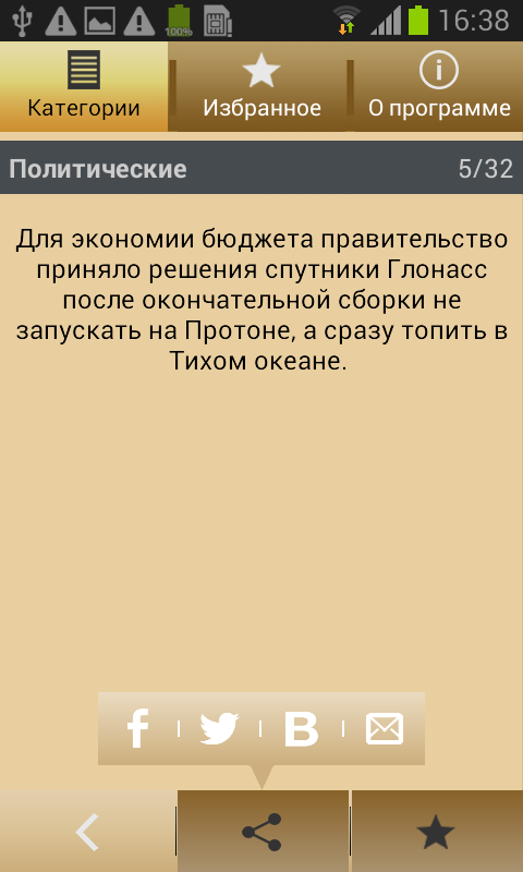 The application has a wide range of options spread anecdotes - VKontakte, Facebook, Twitter and others. It is worth to your friends to read messages on your page and they will be pleasantly surprised.