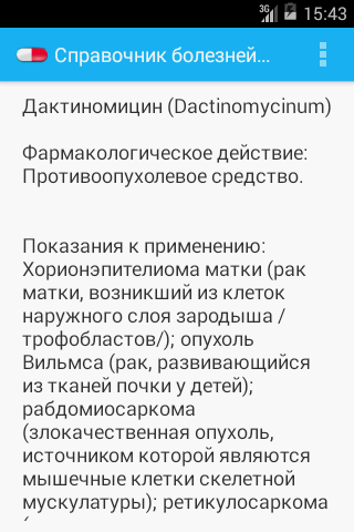 Справочник будет полезен для тех людей, кто заботится о своем здоровье. В приложении Вы сможете найти подробное описание о 500-х заболеваниях и 4000 лекарств. Программа будет полезна студентам медицинских вузов или практикующим врачам. The guide will be useful for those people who care about their health. Attached you can find detailed descriptions of 500 x 4000 diseases and drugs. The program will be useful for medical students and practicing physicians.
