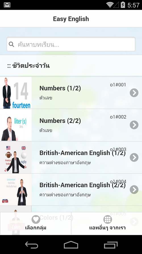 หมายเหตุ: วิดีโอที่คัดมาทั้งหมดเป็นวิดีโอที่เผยแพร่อยู่บน Youtube อยู่แล้วผู้พัฒนาทำหน้าที่แค่คัดและเรียบเรียง หากเจ้าของเนื้อหามีความประสงค์ให้ปลดวิดีโอออกจากโปรแกรมกรุณาแจ้งมาที่ [email protected] ทางทีมงานยินดีปลดออกให้โดยไม่มีเงื่อนไขEnglish is not as difficult as you think. Just a simple way to view one lesson a day from western teachers say Thailand celebrities. Both titles as everyday FAQs polite English. The English pronunciation Over 90 tutorials and FAQs.