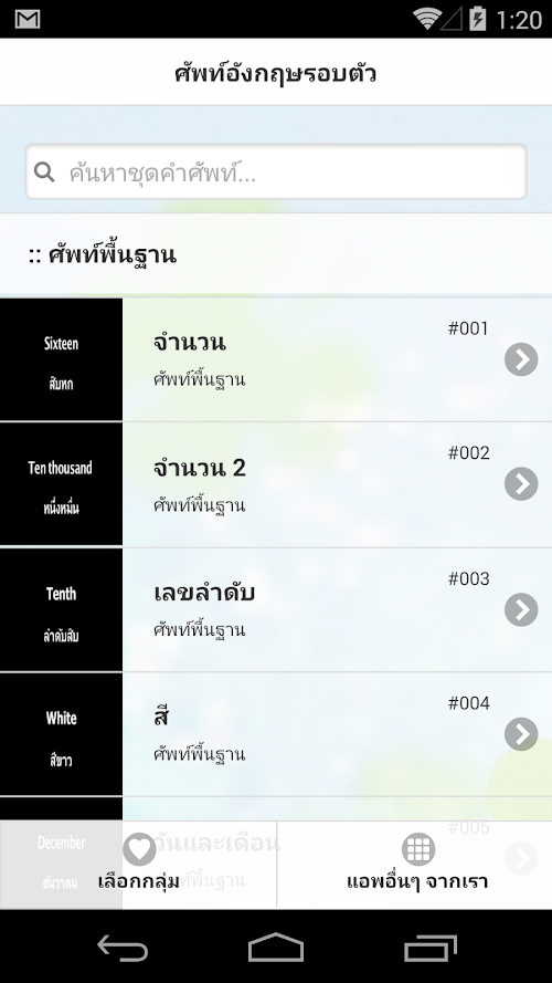 หมายเหตุ: วิดีโอที่คัดมาทั้งหมดเป็นวิดีโอที่เผยแพร่อยู่บน Youtube อยู่แล้วผู้พัฒนาทำหน้าที่แค่คัดและเรียบเรียง หากเจ้าของเนื้อหามีความประสงค์ให้ปลดวิดีโอออกจากโปรแกรมกรุณาแจ้งมาที่ [email protected] ทางทีมงานยินดีปลดออกให้โดยไม่มีเงื่อนไขFind a common vocabulary around. The basic terminology Learn at home and school Words on Weather Cities and Geography Learn about different places Learn about different countries in each continent. Terminology used in universities and companies. Sentences and sentences Video format and word reading. To take a little bit of reading on it, of course.