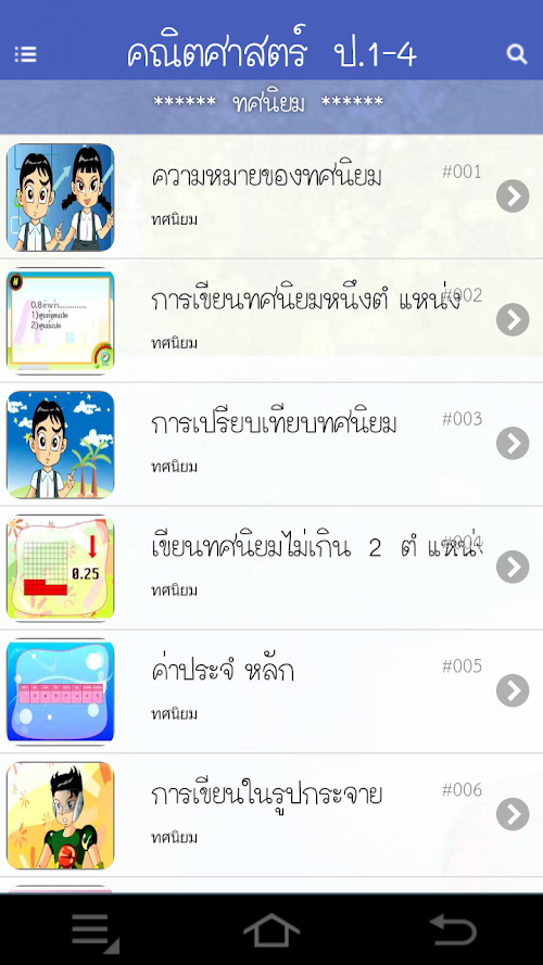 ขอขอบคุณคุณครูใจดีทุกท่านที่ร่วมทำวิดีโอสือการสอนดีๆ ให้กับเด็กไทยครับ ^_^Mathematics is fundamental for children. To be used in everyday life. And higher education levels. This app will help provide a basis for the children. Suitable for children From primary 1 to primary 4 includes content.