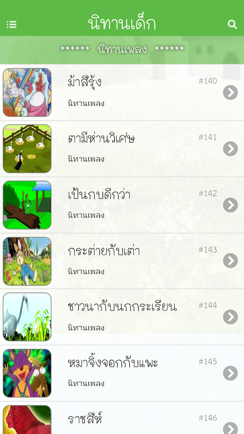 หมายเหตุ: วิดีโอที่คัดมาทั้งหมดเป็นวิดีโอที่เผยแพร่อยู่บน Youtube อยู่แล้วผู้พัฒนาทำหน้าที่แค่คัดและเรียบเรียง หากเจ้าของเนื้อหามีความประสงค์ให้ปลดวิดีโอออกจากโปรแกรมกรุณาแจ้งมาที่ [email protected] ทางทีมงานยินดีปลดออกให้โดยไม่มีเงื่อนไขThe research found that The cool sounds and tales. To help build imagination And increase listening skills And to instill the concept that rub off on children. The moral of the dormant end of the story.