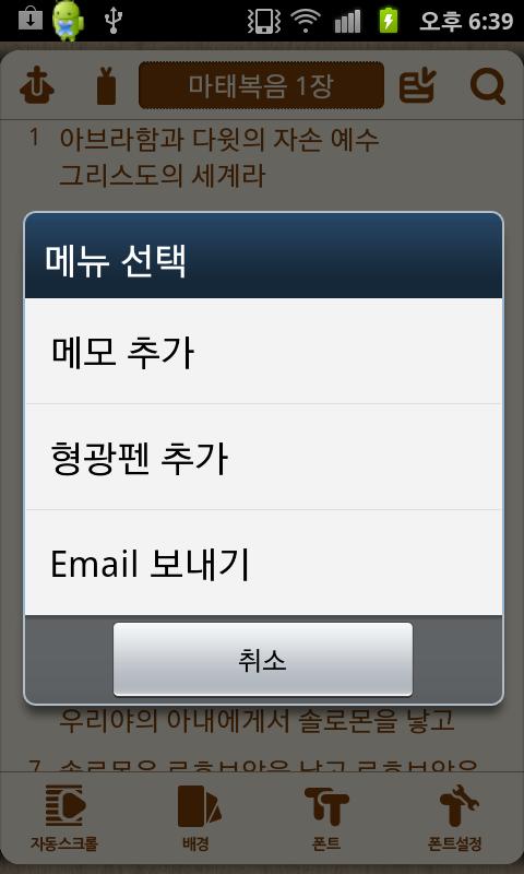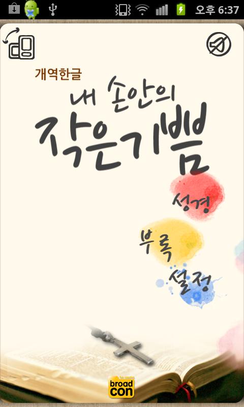 작은 스마트폰에서 나오는 평화로운 하나님을 말씀을 차곡 차곡 담은 내 손안의 작은 기쁨. 손안에 들어오는 성경으로 언제 어디서든 하나님의 말씀을 전해 들을 수 있습니다. 예배를 위한 모든 기능이 담겨 있으며 깔끔하면서 새로운 디자인으로 제작 되었습니다.