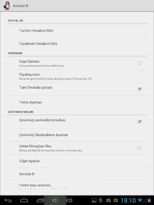- Twitter hesabını Asistan B ile bağlama ve konuşarak, hızlı bir şekilde tweet gönderebilme