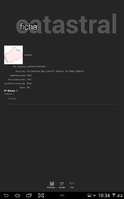 30008- Murcia - Tel. 968274680 – [email protected] - www.coaatiemu.es ieCatastro contains all the functionality to meet easily and visually the buildings are old and use that requires them to perform the evaluation report. The app marks not only the old colors of the buildings, but also the type of use (collectively, Single or cultural). It is available for both iOS and Android, and Smartphone format as for Tablets and iPads.