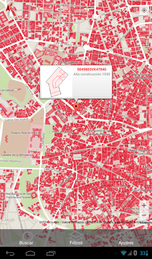 This application was developed with permission and license from the Directorate General of Land Registry. The database includes all buildings in Spain (except Basque Country and Navarre).