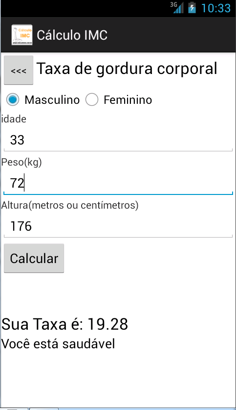 Faça cálculos de massa corporal(IMC), Taxa de gordura e Índice de Adiposidade corporal(IAC). Tudo em um único aplicativo.