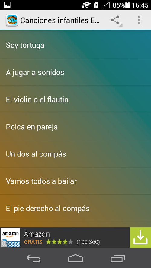 La aplicación es sencilla de usar, solo es necesario pulsar sobre la canción que queramos reproducir y al momento podremos escucharla. Tien la funcion de compartir y de reproducción en bucle para que la música no pare nunca.Children's Songs in Spanish classics of all time to enjoy the little house.