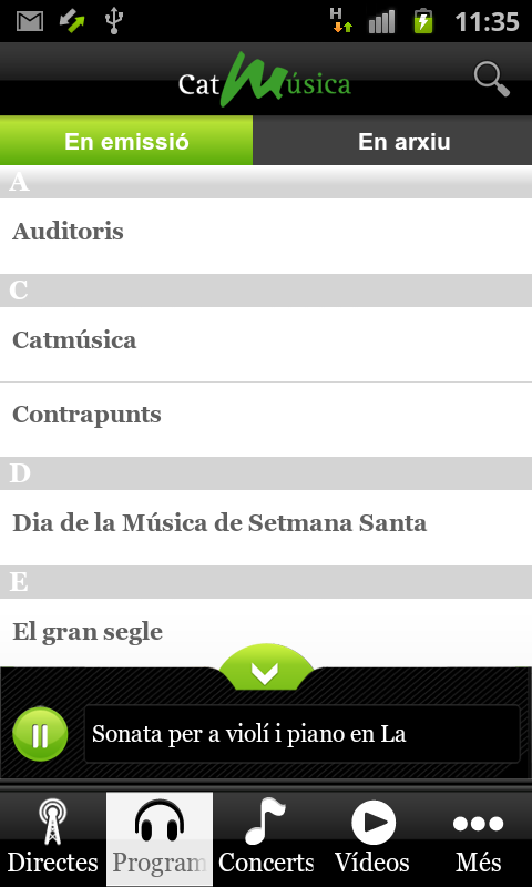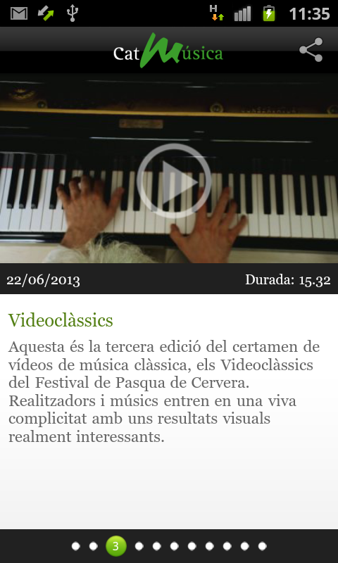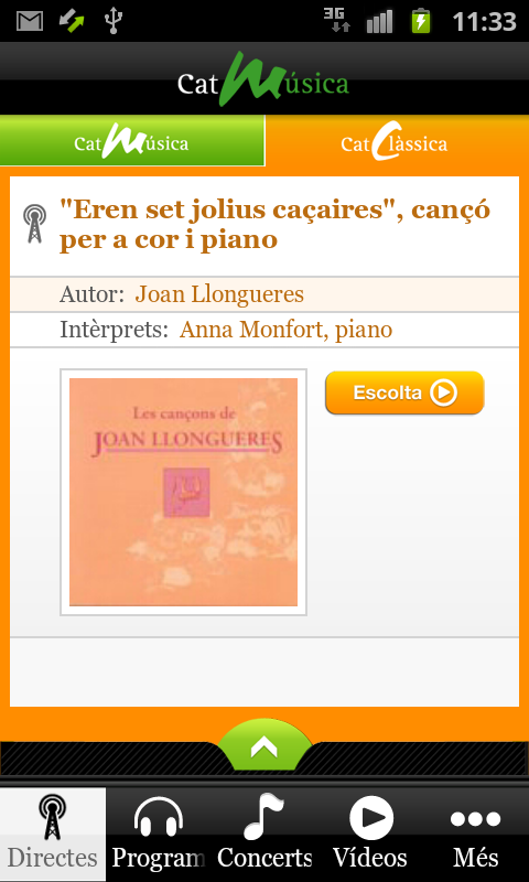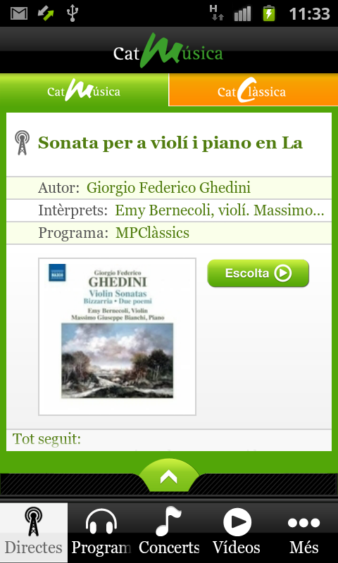 You can follow Catalunya Musica and CatClassica’s broadcasts, watch the latest videos from channel 33’s program CatMusica, and share them with your friends through social networks or via e-mail.