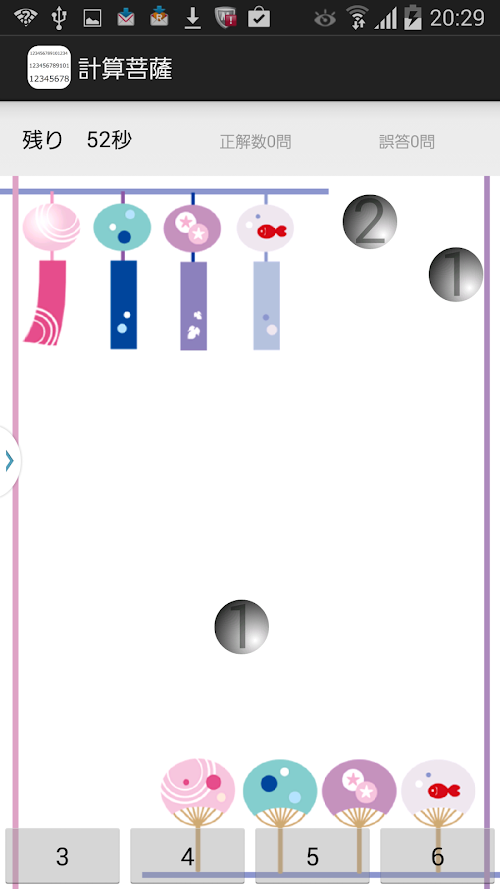 最初は単純な計算ですが、徐々に難易度が上がっていきます。It is a brain training app calculation will answer within the time limit the number of sphere and the sum of the numbers displayed on the screen.