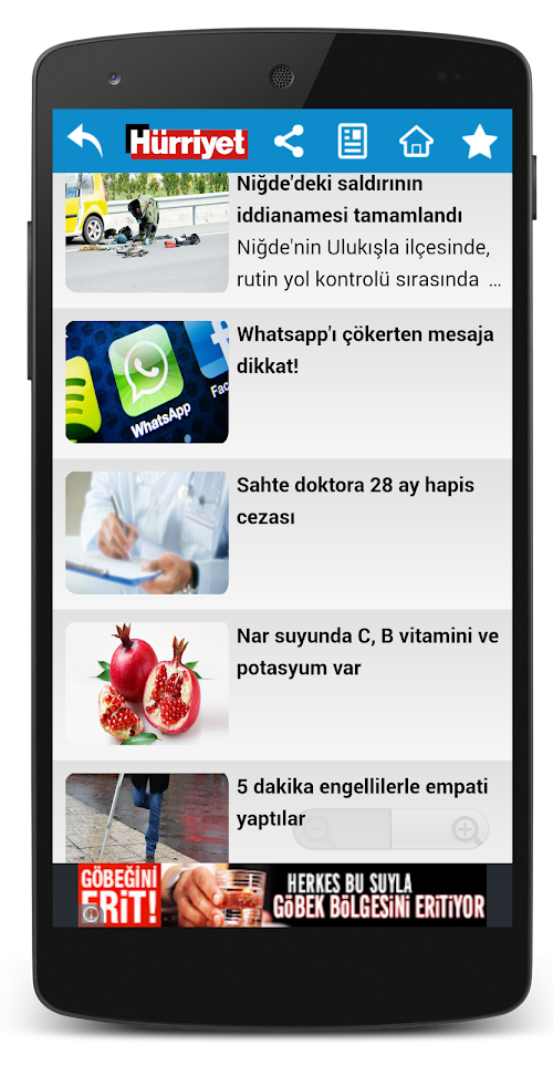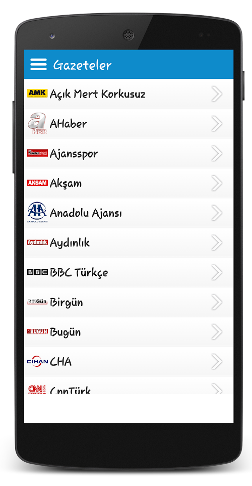 Gazeteler Android Uygulaması Türkiye'deki başlıca gazetelerin ve haber sitelerinin her birinin güncel haberlerini her gazete ve haber sitesi için özel oluşturulmuş sayfada göz gezdirebileceğiniz ve isterseniz tıklayarak tüm haberi okuyabileceğiniz günlük gazetelerin ilk sayfalarını manşet butonu ile görebileceğiniz bir gazete okuma programı ve haber uygulaması,