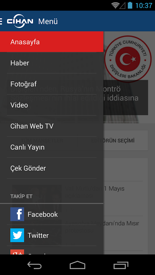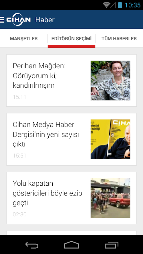 Cihan Haber Ajansı Android uygulaması ile manşet ve son dakika haberlerine anında erişebilirsiniz. Foto galeri ve video galeri özellikleri ile haberlerin detaylarını görsel olarak ta takip edebilirsiniz. Çek Gönder özelliği ile de anında yakaladığınız haberleri bizimle paylaşabilirsiniz.