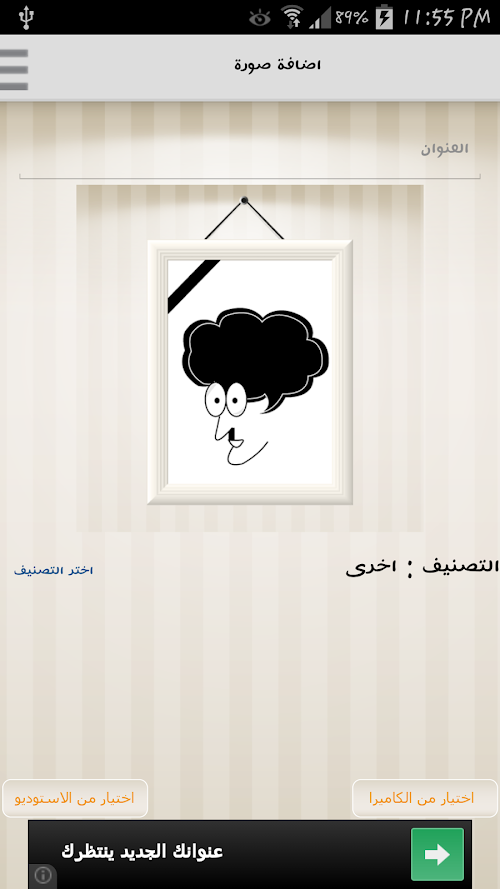 ٣-اضافة صورة عن طريق الاختيار من الاستديو او بالتقطها من الكاميرا