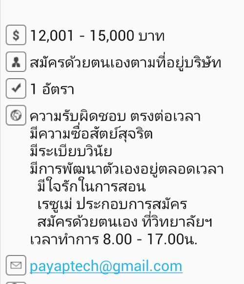 มาแล้ว กับตำแหน่งงานต่างๆ แอพพลิเคชั่น สำหรับคนหางาน คนว่างงาน หางานผ่านแอพพลิเคชั่น บนหน้าจอมือถือของคุณได้ง่ายๆ แล้ว กับตำแหน่งงาน มากมาย ไม่ว่าจะเป็นงาน ตำแหนงงานราชการ ตำแหน่ง งานเอกชน เรามีตำแหน่งงานอัพเดทใหม่ทุกวัน ตำแหน่งงานทั่วประเทศ ไม่ว่าจะเป็น ตำแหน่งงานราชการ งานราชการเชียงใหม่ งานเชียงใหม่ ตำแหน่งงานว่างพร้อมมาให้คุณ ได้หาตำแหน่งงานที่ถูกใจได้ ที่นี่แล้วกับ แอพพลิเคชั่น งานราชการ สามารถดาวน์โหลดได้ฟรี ไม่เสียค่าใช้จ่าย และสามารถใช้งานได้ง่ายๆ ^__^Had it for various applications and applications for the unemployed job seeker via the application. On the screen of your phone easily with many jobs, whether the job. Position and government for private sector jobs are updated daily. Jobs across the country, whether it is for agencies. Agencies Chiang Mai job vacancies available to you. Have a job like that. Here, with an application to the authorities can be downloaded for free. No charge And can be deployed easily. ^ __ ^