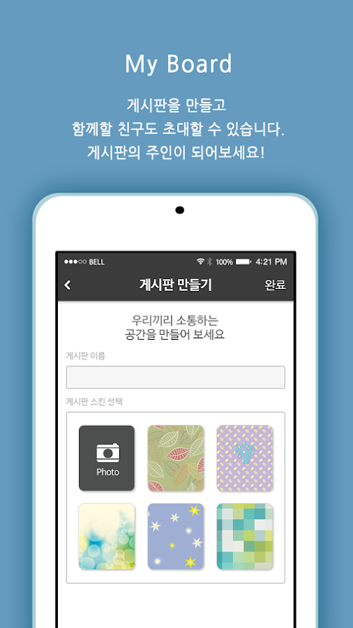 게시판을 함께 사용할 지인을 초대하여 다양한 주제로 소통할 수 있습니다.