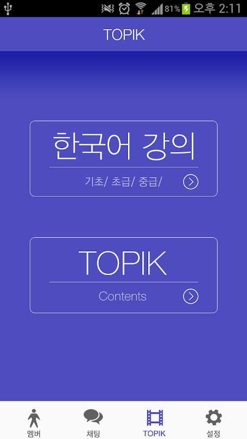TOPIK KOREA(토픽코리아)는 한국어 및 TOPIK 시험 대비 학습을 보다 편리하게 할 수 있도록 ‘ TOPIK-Realchat' 이라는 APP을 개발하였습니다.