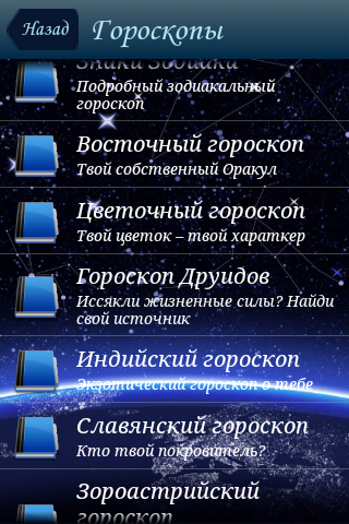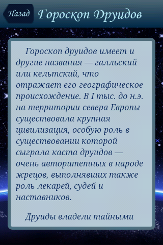In this application there is also a description of each of the horoscope and the history of its origin.