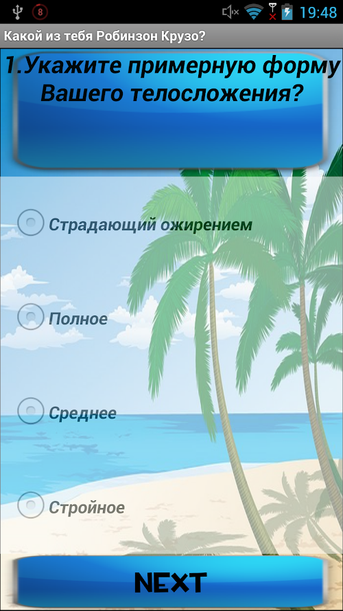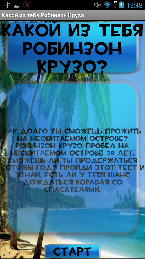This version of Какой из тебя Робинзон Крузо? Android App comes with one universal variant which will work on all the Android devices.