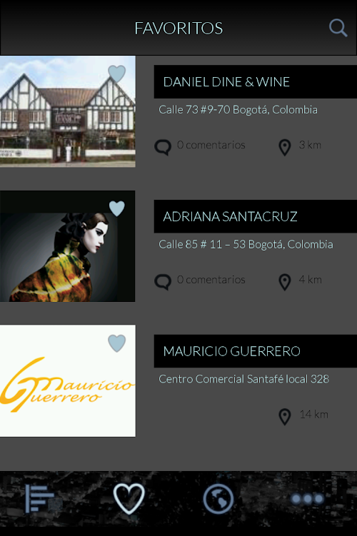 Every day you will find newnesses as the information is constantly updated. Our network of exclusive establishments use Bogota Exclusiva App to communicate their latest releases.