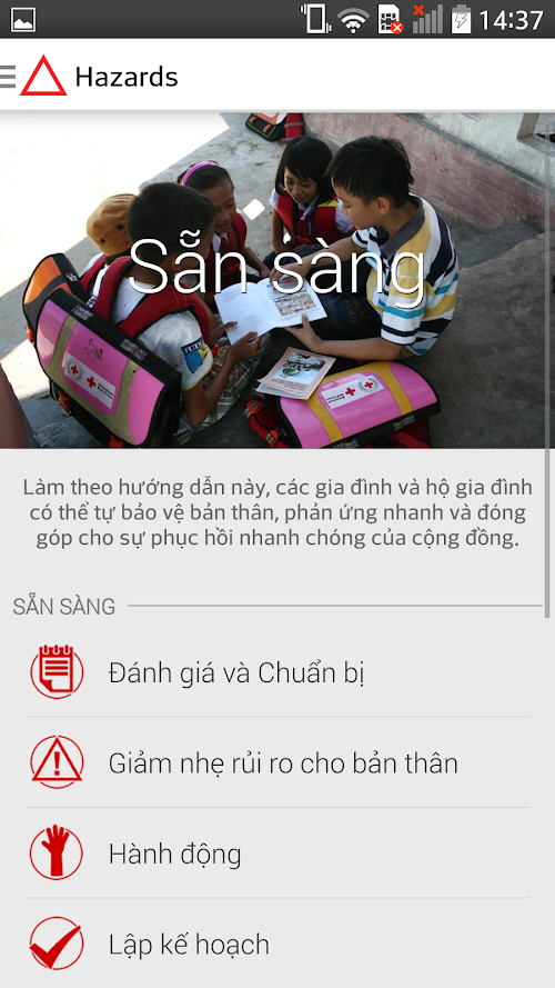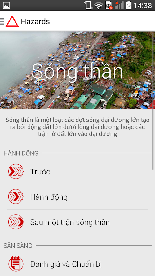 Phát triển cho thị trường [Việt Nam] như là một phần của một dự án toàn cầu của Trung tâm phòng ngừa thảm họa toàn cầu thuộc Hiệp hội chữ thập đỏ và trăng lưỡi liềm đỏ quốc tế cung cấp các hướng dẫn phòng chống thiên tai, cũng như cảnh báo cảnh báo sớm dựa trên dữ liệu của NOAA và USGS, và các thông tin thời gian thực từ Trung tâm khí tượng thủy văn Quốc gia Việt Nam.Description: hurricanes, earthquakes or floods - Official [Application of multi-peril for Vietnam's Red Cross Vietnam] gives you instant access to the information you need to know to prepare for and respond the impact of these threats. Through features warning systems and the ability to monitor and track the weather, multi-hazard applications to Vietnam by Vietnam Red Cross allows users to prepare their families before the disaster ear, seek help, and tell others that they are safe even when a power failure.