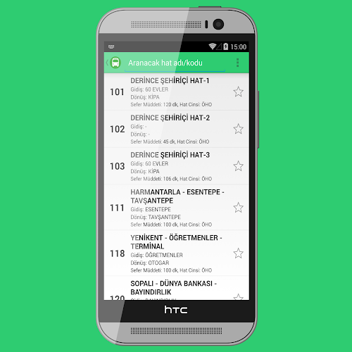 ✓ Dileğiniz hattı, liste üzerindeki yıldıza tıklayarak favorilerinize ekleyebilirsiniz