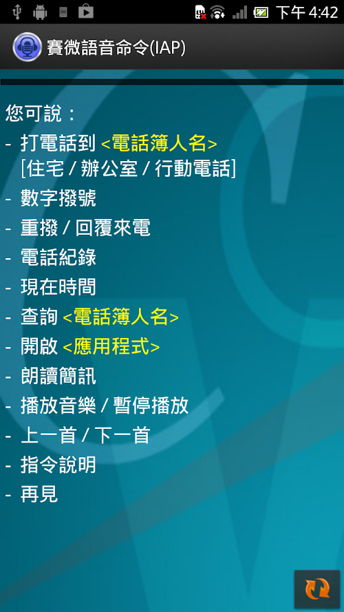 *注意五:Desire 600暫不支援藍牙聲控功能 Cyberon Voice Command is a continuous voice recognition application software, to provide users with voice dialing and other voice features. Such as voice-activated dialing for contacts, query time now, open the app, SMS reading, playing music.