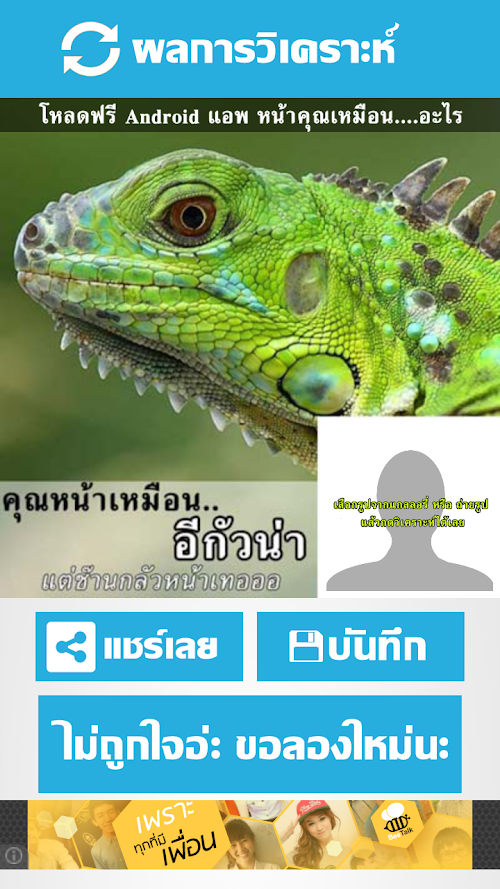 แอพหน้าเหมือนสัตว์,หน้าคุณ ,หน้าคุณเหมือน , คุณหน้า , คุณหน้าเหมือน , คล้ายสัตว์ , หน้าคล้ายสัตว์, หน้าเหมือน The application or select a picture and then make an intelligent analysis. Find your face like nothing. There are many types In order to create a hard color to it, of course. A little stir Share with friends, fun, fast, beautiful and easy to come up with a new look. Comes with full function. This is more a hundred kinds. Clearly and Beauty And smaller