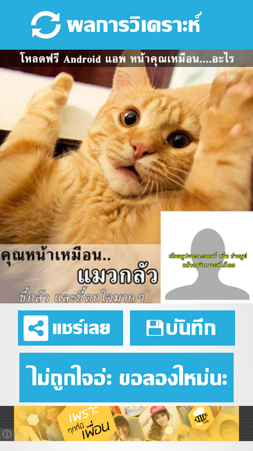 If you are looking to download other versions of หน้าคุณเหมือน....อะไร Android App, We have 1 version in our database. Please select one of them below to download.