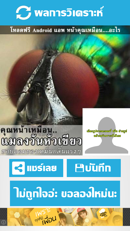 This version of หน้าคุณเหมือน....อะไร Android App comes with one universal variant which will work on all the Android devices.