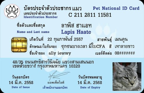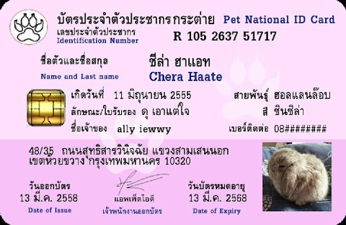- เลขที่บัตรเป็นรหัสที่สร้างขึ้นตามตัวสัตว์เลี้ยงนั้นๆเท่านั้น จะไม่ซ้ำกัน ทั้งหมวดหมู่และเลขรหัสแต่ถ้าตัวเดิมจะได้รหัสเดิม