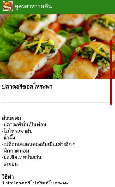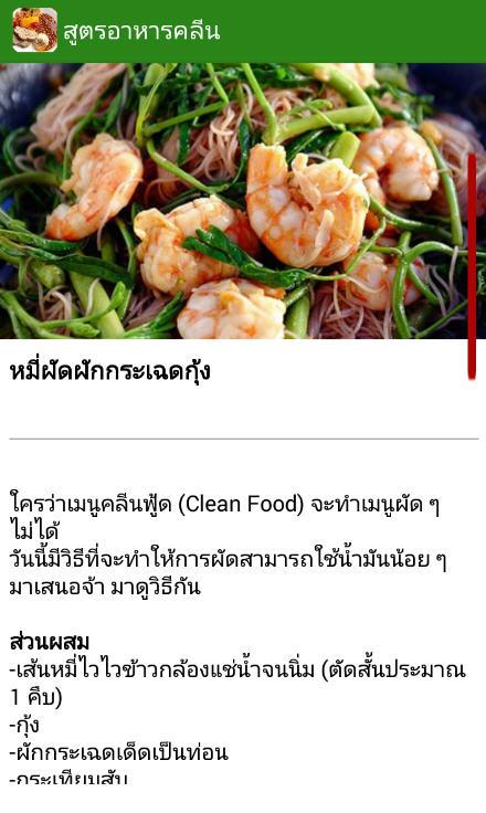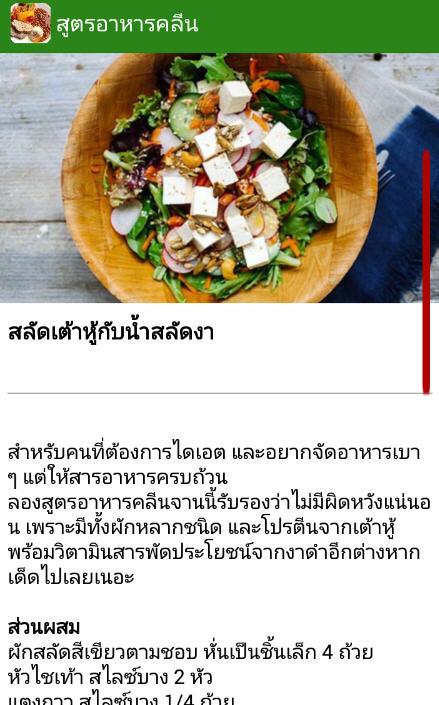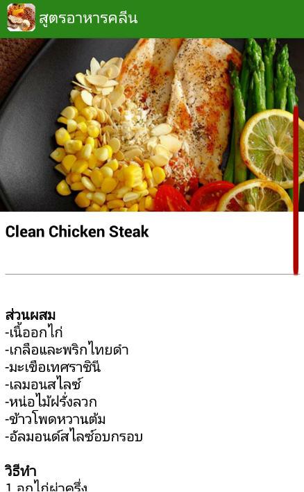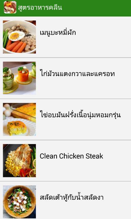 แอพพลิเคชั่น สูตรอาหารคลีน รวบรวมสูตรเมนูอาหารคลีนเพื่อสุขภาพ สะอาด ผ่านกระบวนการปรุงแต่งน้อยที่สุด โดยเมนูอาหารคลีนมีดังต่อไปนี้