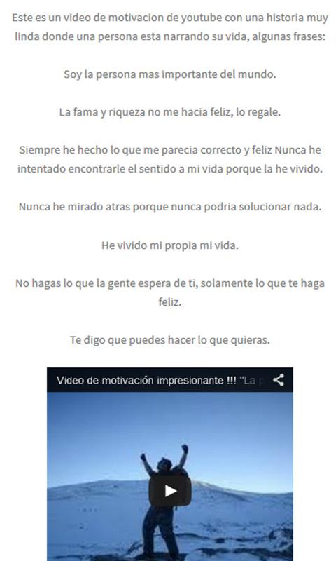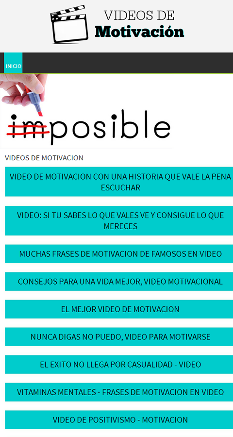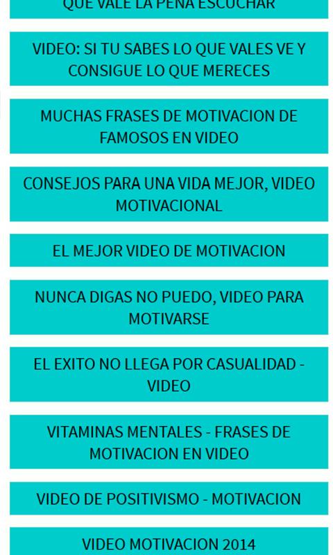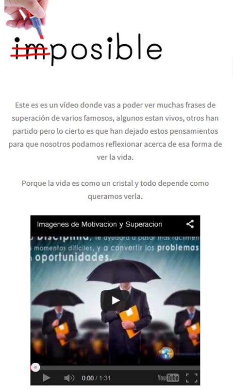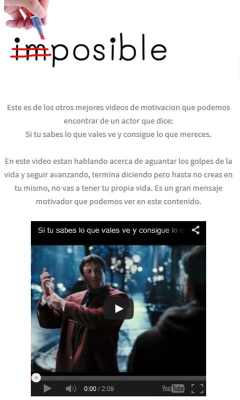 Nunca digas "No Puedo" ni en BROMA! Porque el inconsciente no tiene sentido de humor y lo tomará en serio. En esta app encontrarás una recopilación de videos para motivarte y alcanzar el éxito.Never Say "I Can not" or JOKE! Because the unconscious has no sense of humor and take it seriously. In this app you will find a collection of videos to motivate and succeed.