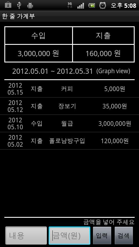 한 줄 가계부는 쉽고 간편한 가계부 어플입니다.