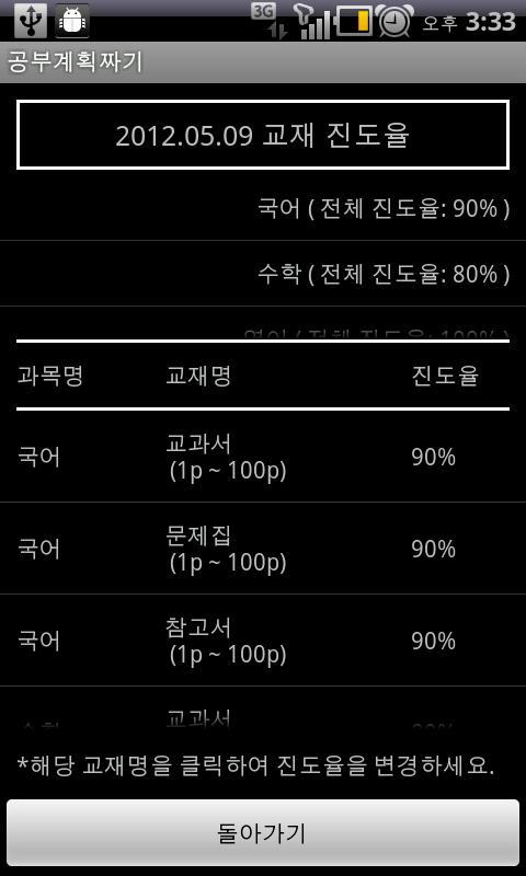 5) 진도 버튼을 클릭하여 오늘 공부한 페이지를 업데이트 하세요.