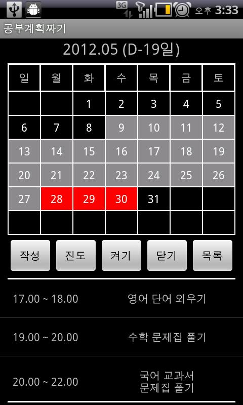 3 D-day until the day before the test management: from today's date on the calendar gray