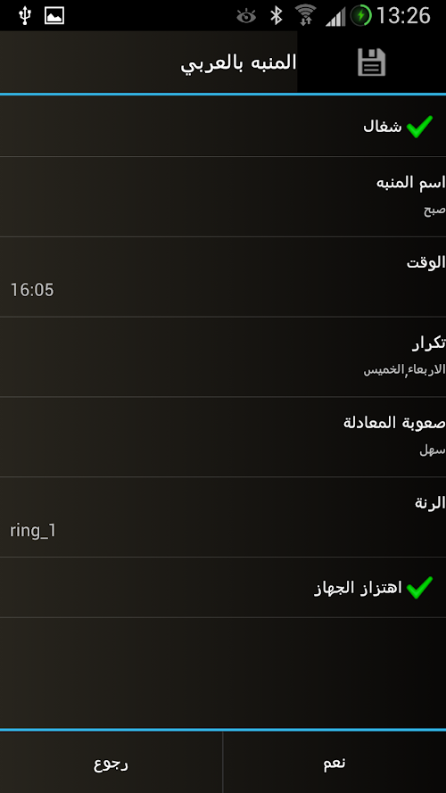 This version of المنبه العربي (ساعة منبه) Android App comes with one universal variant which will work on all the Android devices.